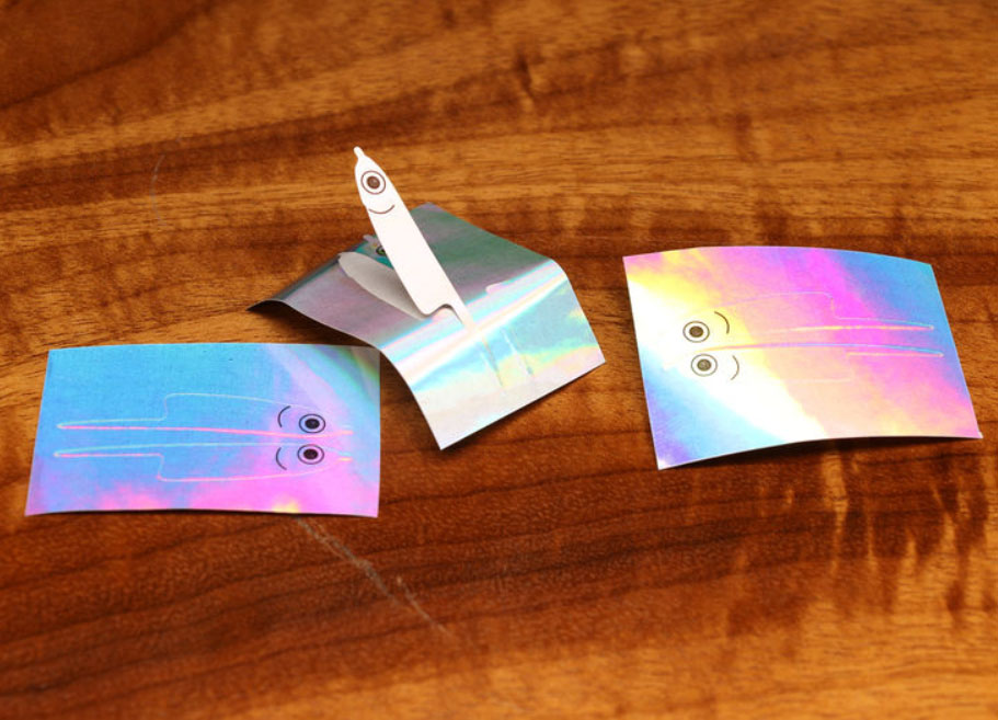 Popovics Fleye Foils Silversides -klisterfolier levereras i förpackningar om 10 par och finns i tre storlekar: Small, Medium och Large.
