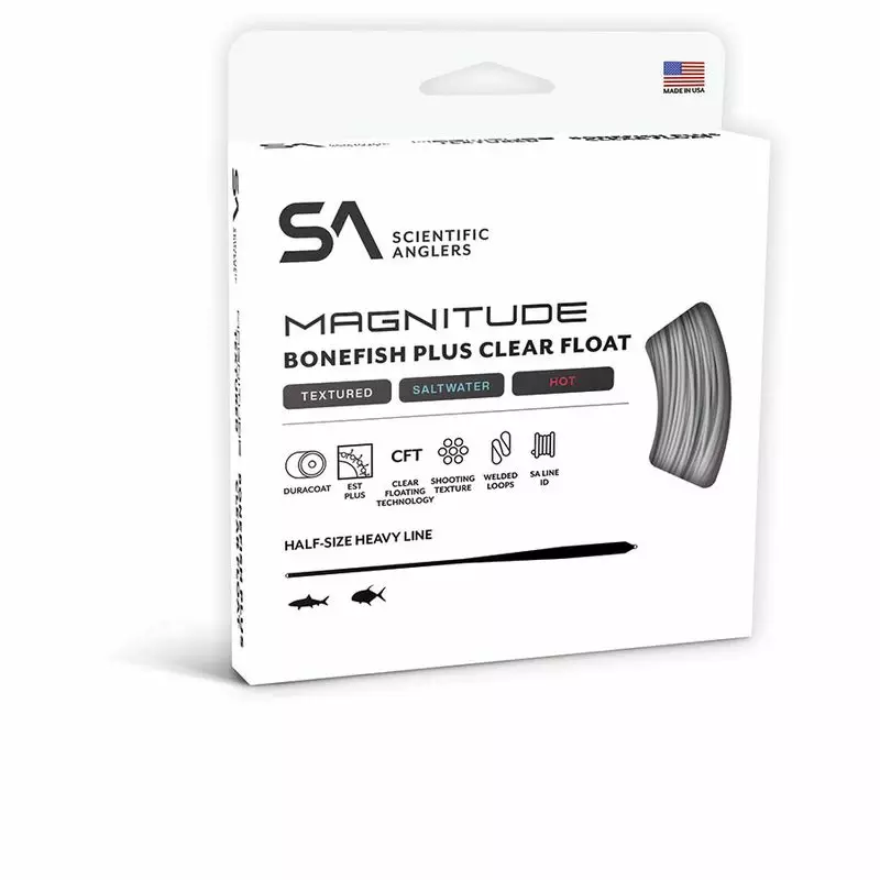 Scientific Anglers Magnitude Bonefish+ Ivory/Clear flytande tropisk fluglina, designad för att erbjuda utmärkt prestanda vid flugfiske i saltvatten. Denna lina kombinerar innovativa teknologier och hållbar konstruktion, vilket gör den till ett utmärkt val för krävande fiskare.