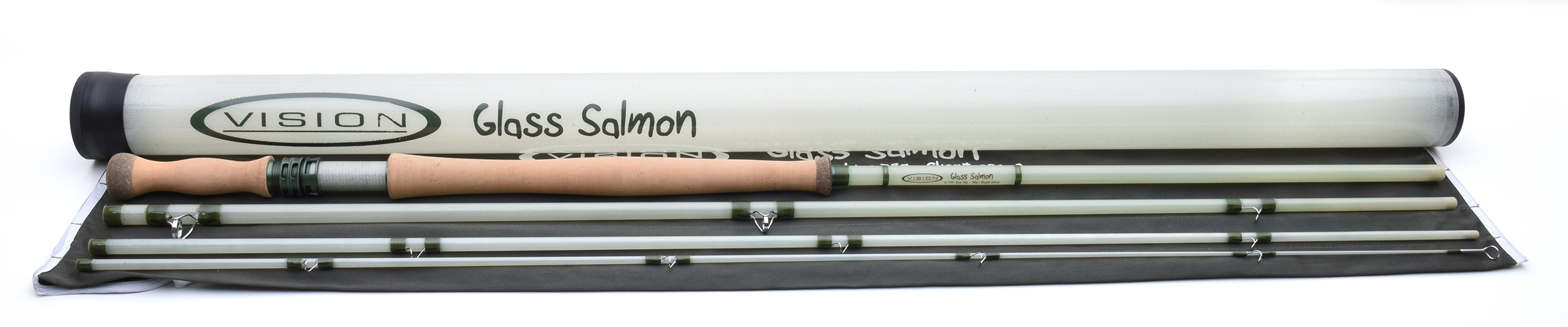 Vision Glass Salmon -glasfiberstänger är kvalitetsstänger av den nya generationens glasfiber. Du kan glömma de slappa och kraftlösa stängerna från 60-talet, förutom materialet har de nästan inget gemensamt med moderna glasfiberstänger. Dessa stänger kombinerar modern klingaktion med oändlig flexibilitet. Stängerna känns lätta i handen och vid fiske. Klingorna har kraft, även om de först kan kännas lite mjuka för den som är van vid snabba kolfiberstänger. Ladda rullen med 580 grain Vision Hammer Skagit och förvånas över hur enkelt och långt staven kastar.