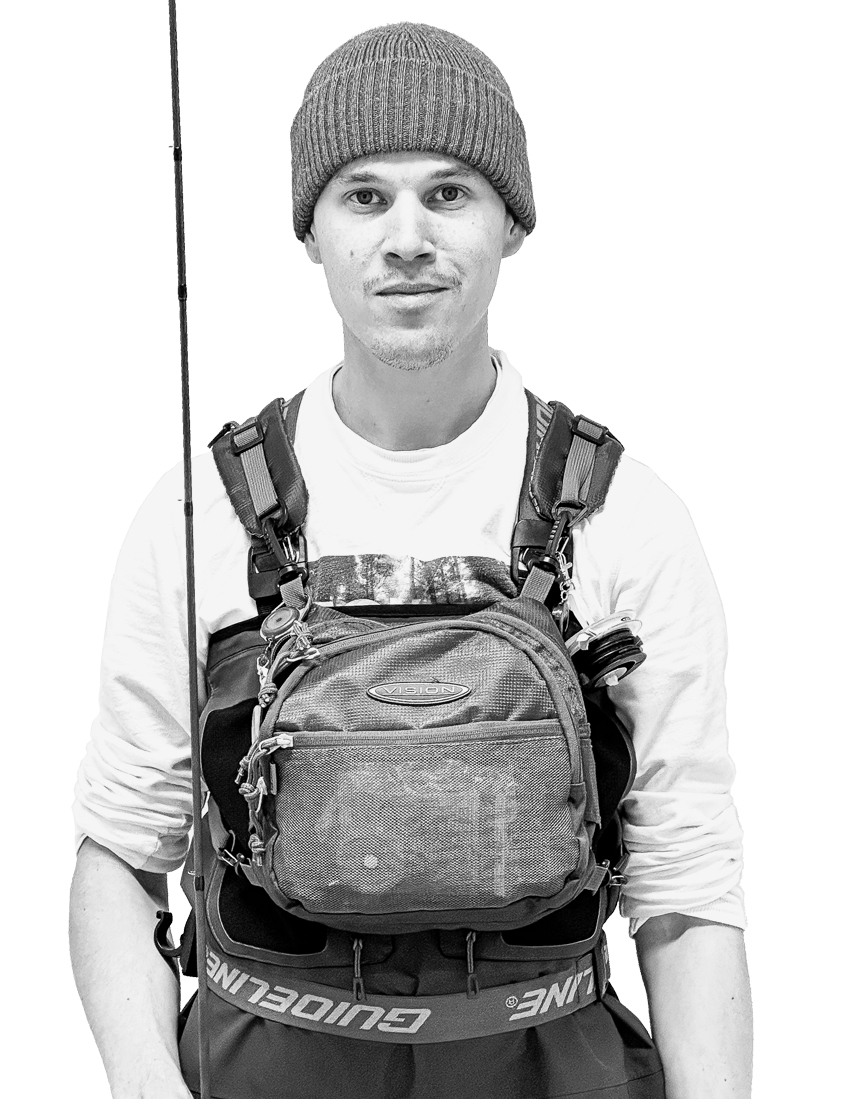Teemu är en entusiastisk flugfiskare. På Ruoto ansvarar Teemu för att plocka onlinebeställningar och för ordning och funktion i lagret.