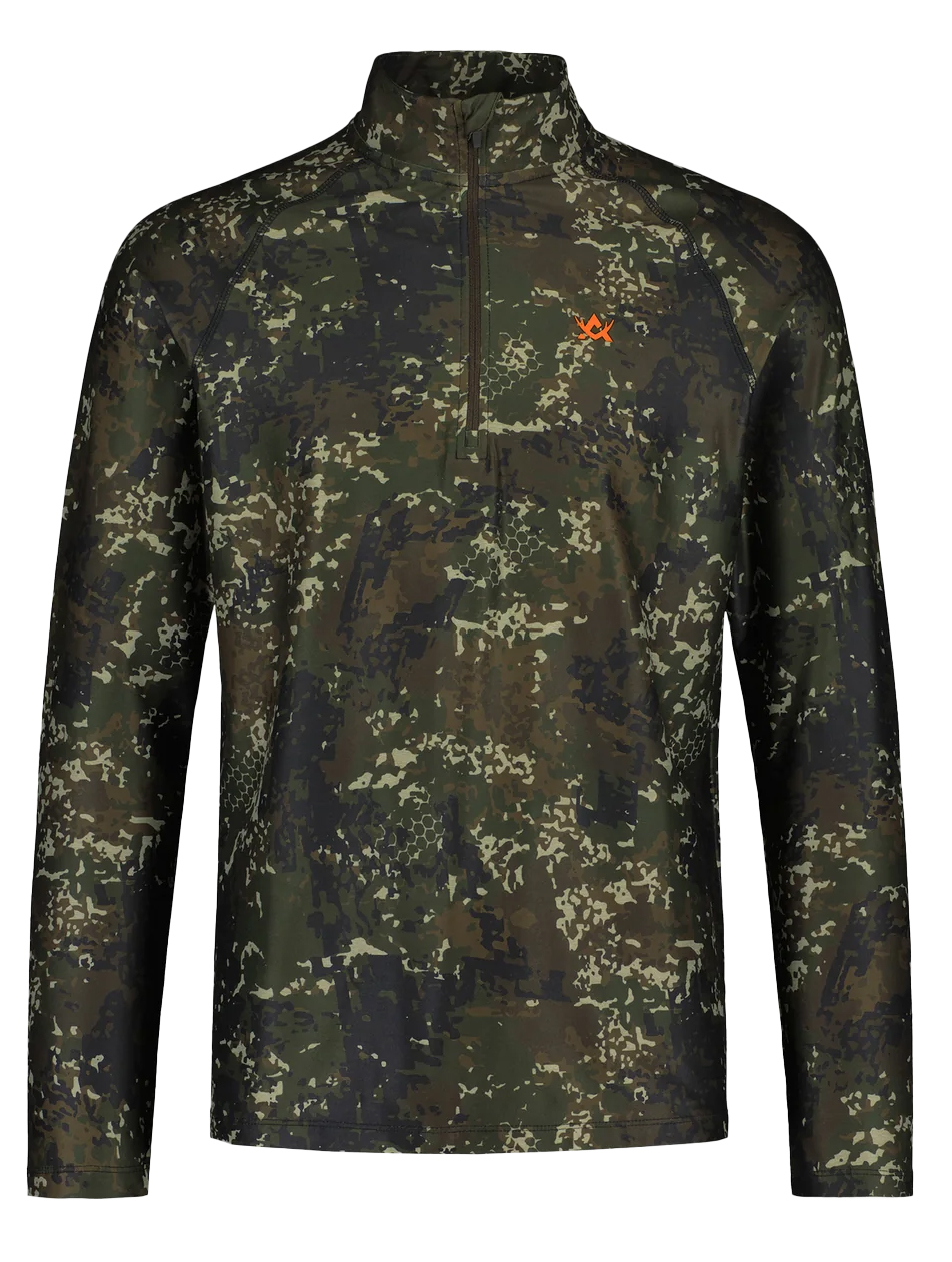 Alaska CoolDry Ms Half-Zip Top är en teknisk CoolDry Half-Zip tröja för jakt. Materialet är behagligt mjukt och elastiskt samt torkar snabbt. Hög krage och halv dragkedja.