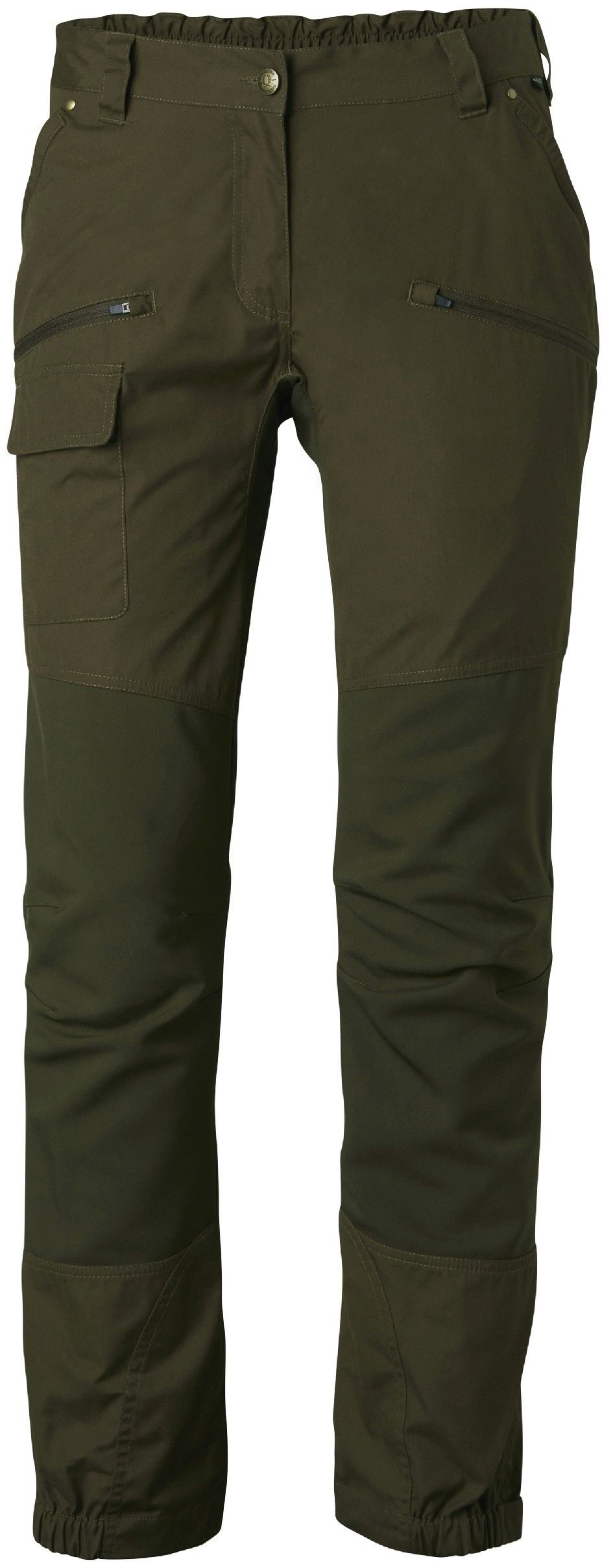 Den elastiska midjan med bälteshällor och de förformade knäna garanterar optimal passform och rörelsefrihet. Byxbenen kan enkelt dras över stövlar tack vare de elastiska bensluten med kardborreband.