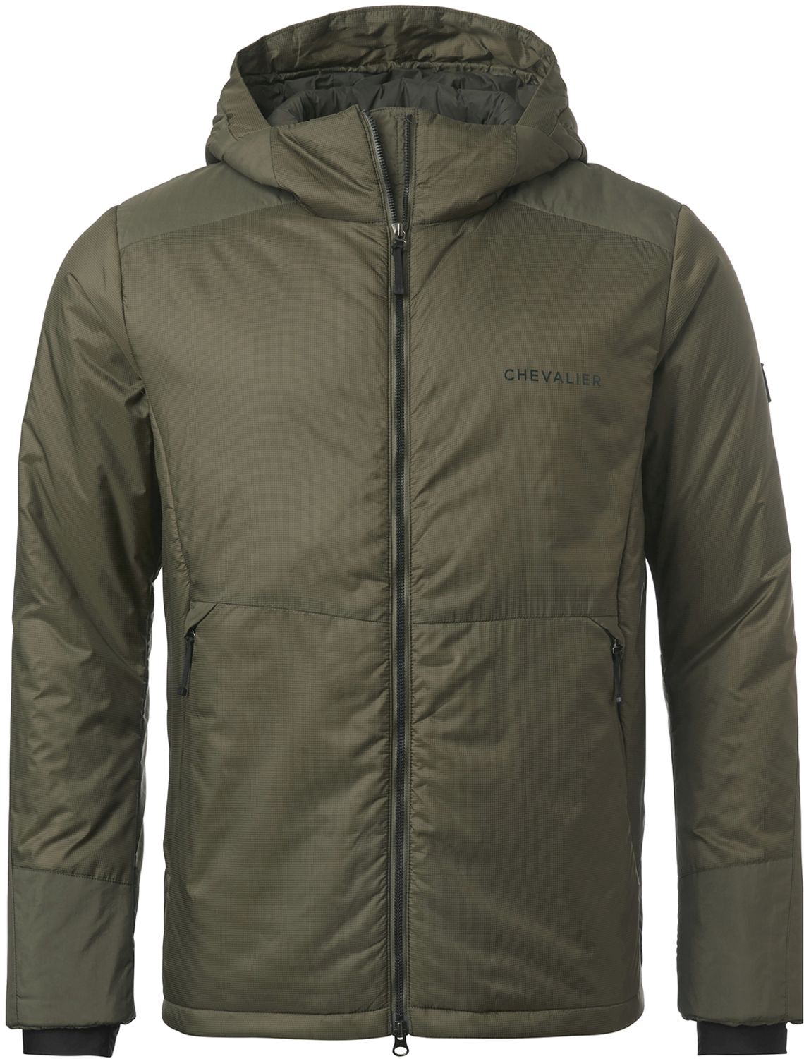 Chevalier Thermo fill140 Jacka Thermo Fill140 Hood Jacka är en mångsidig och lätt jacka som fungerar som ett ytter- eller mellanlager. Tack vare den följsamma, mjuka och luftiga vadderingen passar jackan som ett värmande lager under eller över skaljackan beroende på aktivitet. Under pass och kalla dagar fungerar Thermo-jackan som ett isolerande lager under jaktjackan. Vid rörlig jakt kan du bära Thermo-jackan över skaljackan för att hålla dig varm och hålla kylan borta under pauser och stillastående. Vadderingsjackan är tillverkad huvudsakligen av återvunnen polyamid och polyester. Materialet torkar snabbt och värmer även när det är fuktigt. Jackan har två rymliga fleecefodrade fickor med dragkedja. På insidan finns en dragkedjeficka för nycklar och telefon samt två öppna fickor för handskar och mössa. Den tvåvägs dragkedjan framtill ökar andningsförmågan och underlättar rörelse. Tryckknappen i fållen håller framstycket på plats även när dragkedjan öppnas för ventilation. Jackan har extra förstärkningar på axelpartiet och ärmsluten. Den rymliga huvan kan justeras i två riktningar, så att den sitter tätt mot huvudet med en enkel enhandsrörelse. Fållen är justerbar och ärmsluten har en elastisk mudd, tumhål och en praktisk förlängningsfunktion som ger ökad rörelsefrihet. Den lätta vadderingsjackan kan packas in i sin egen huva, vilket gör att den tar upp lite plats och vid behov även fungerar som en mjuk kudde. Vikt 560 g i storlek Medium