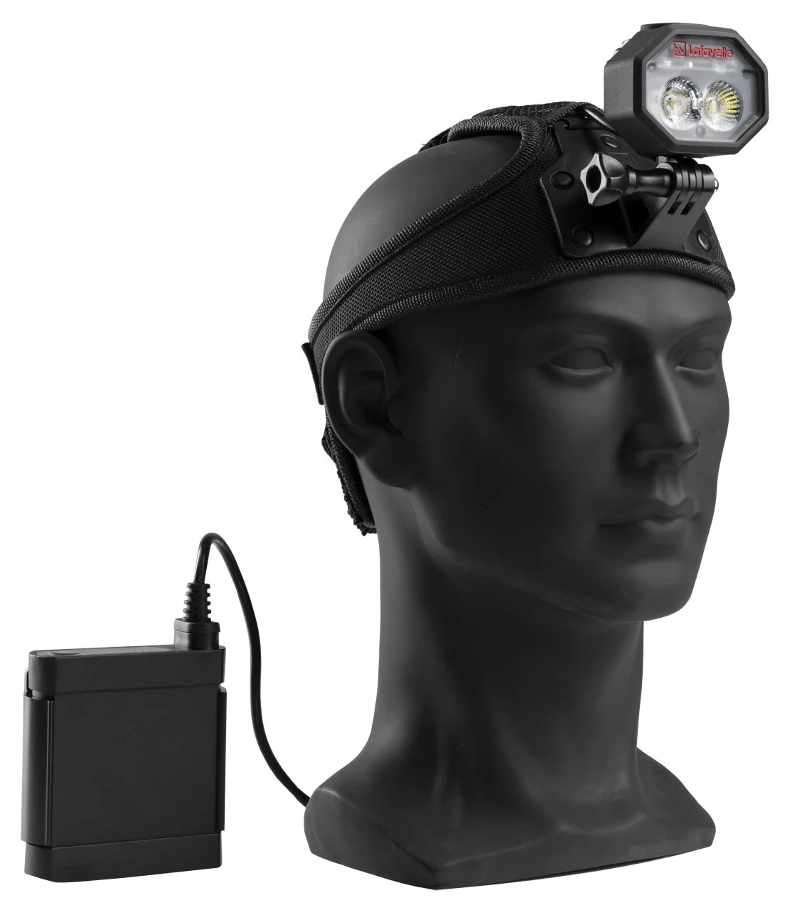 När man byter från ett huvudburet batteri till ett större batteripaket får man en högpresterande lampa trots sin lilla storlek. Lampan har två LED-lampor vars ljus sprids över ett imponerande brett område, vilket säkerställer största möjliga synfält. För att vara en så liten enhet är ljusstrålen otroligt imponerande.