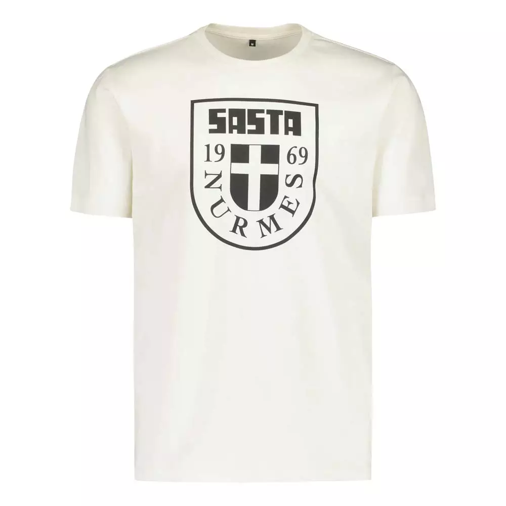 Sasta Nurmes Flag Winter White – en bekväm och mjuk T-shirt tillverkad av ekologisk bomull, perfekt för fritidsbruk.