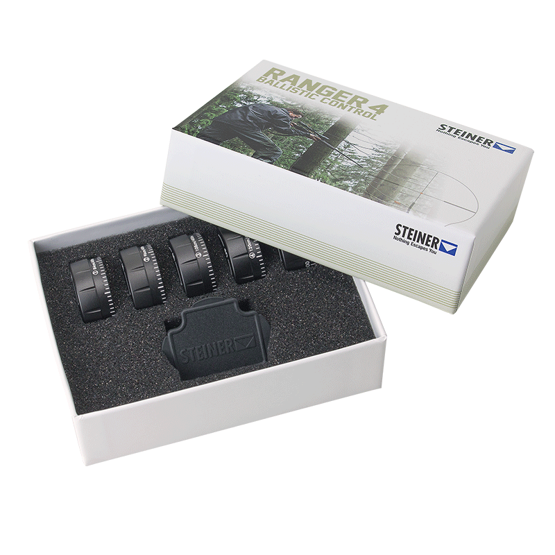 Steiner Ranger 4 Ballistic caps är en uppsättning höjdrattar som är designade för användning med Steiner Ranger 4 kikarsikten. Uppsättningen innehåller fem olika justeringsrattar som möjliggör mer exakt och mångsidig justering av siktet för olika avstånd och förhållanden. Detta tillbehör är särskilt för jägare och precisionsskyttar som vill förbättra sitt siktes prestanda och anpassa det till olika ballistiska behov.