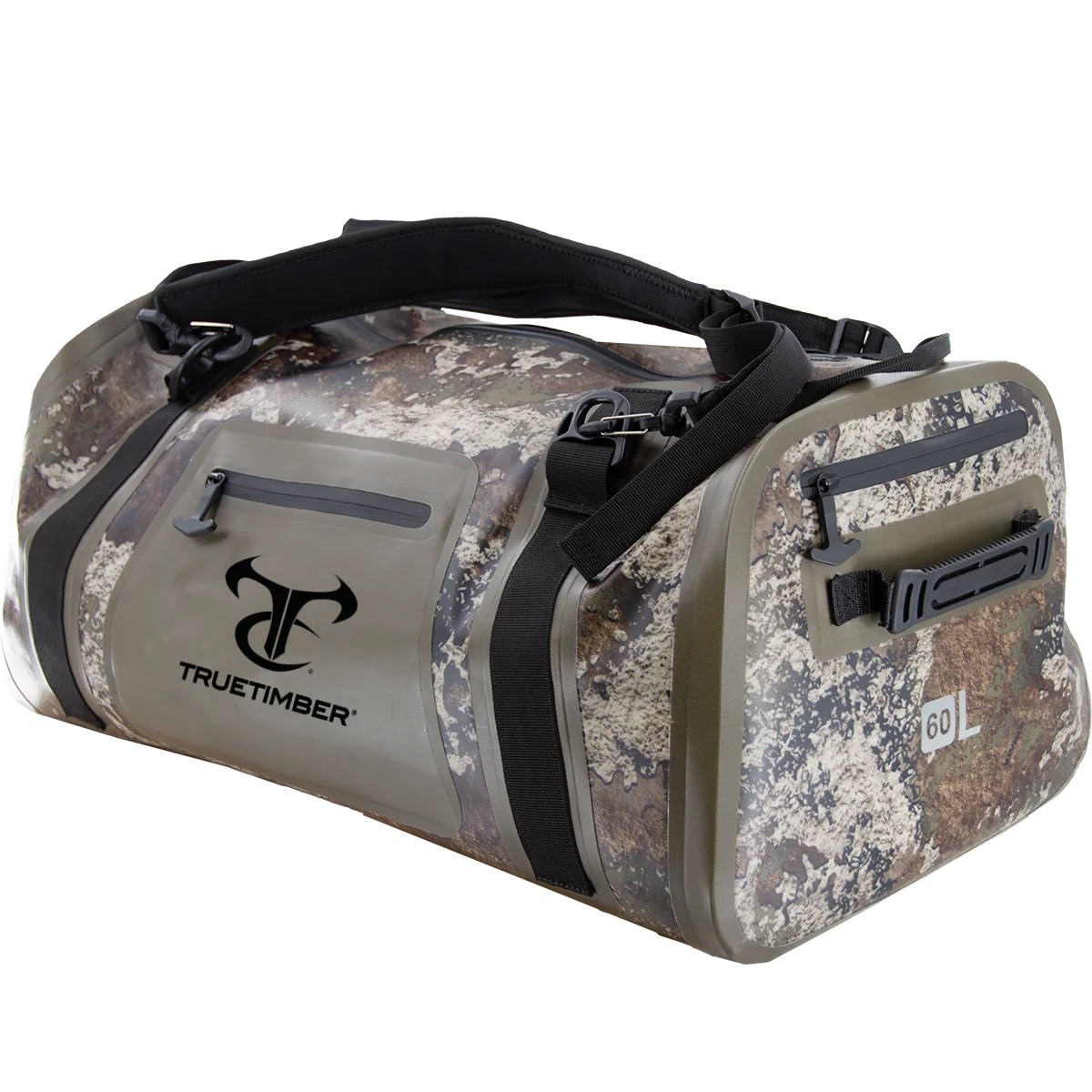 TrueTimber MistRiver Welded Dry Duffel 60L duffelväska erbjuder ett perfekt skydd mot varierande väderförhållanden och dess vattentäta, svetsade sömmar garanterar att innehållet förblir torrt under alla förhållanden. Denna väska är utmärkt för jakt, resor eller daglig användning.