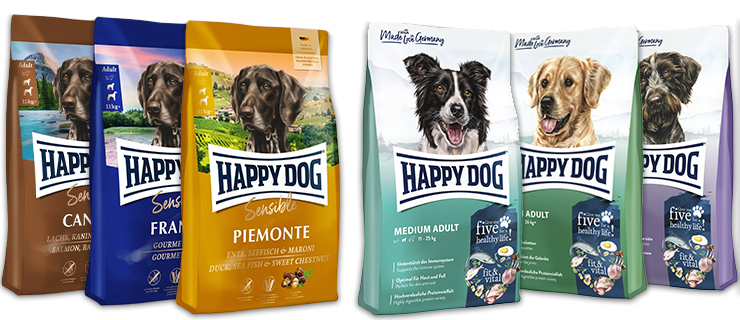 Happy Dog är ett högkvalitativt hundfoder från ett tyskt familjeföretag som har varit verksamt sedan 1700-talet. Happy Dog har varit Tysklands mest sålda hundfoder sedan 2015.