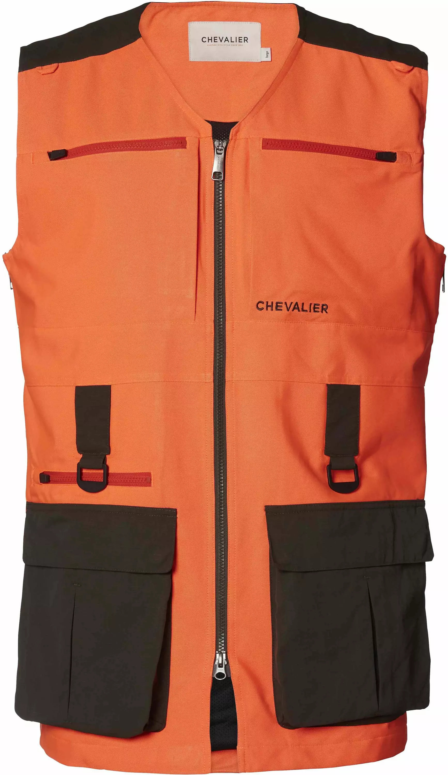 Chase Doghandler Vest -västen är speciellt utvecklad för hundförare. Västen är sydd av vattentät polyester och har Cordura® Ripstop-förstärkningar på axlarna. Västen har plats för allt som en hundförare behöver. Totalt har denna jaktväst åtta fickor, till exempel framfickor med lock, där den högra har en gps-ficka, två radiofickor, två bröstfickor och en rymlig ryggficka. Hundförarens väststorlek kan justeras på båda sidor med hjälp av dragkedjan. På så sätt kan västen utvidgas vid kallt väder när du vill ha en tjock tröja eller jacka under. Västen har två D-ringar i öglorna framtill.