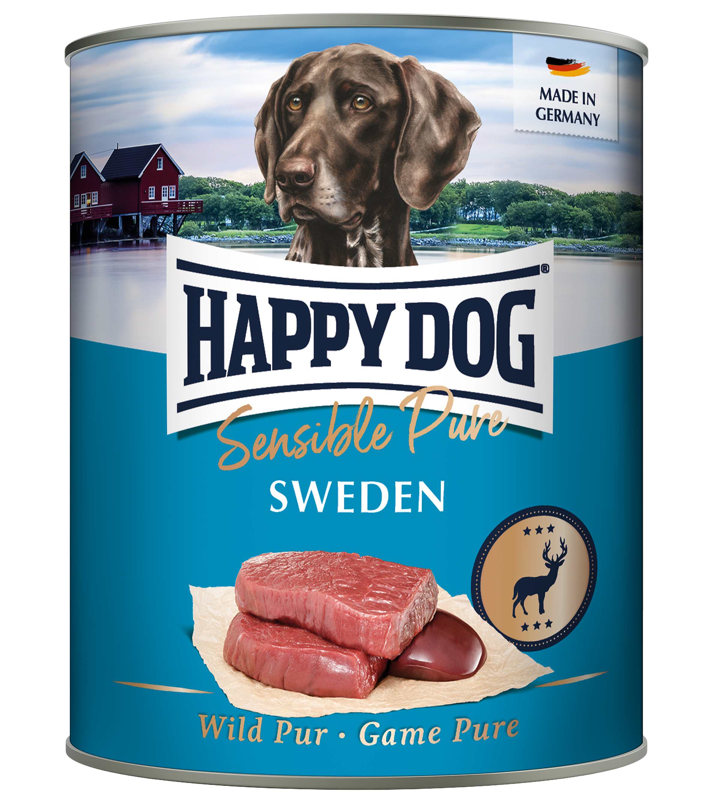 Med Happy Dog Sensible Pure Sweden våtfoder får din hund naturen i sin skål! Det högkvalitativa köttfodret är tillverkat av 100 % värdefullt viltkött och andra djurdelar, såsom hjärta, lungor och lever, och innehåller viktiga vitaminer och mineraler. Köttet och de andra djurdelarna kommer uteslutande från lokalt vilt*. Våtfodret tillverkas utan soja eller andra vegetabiliska tillsatser.