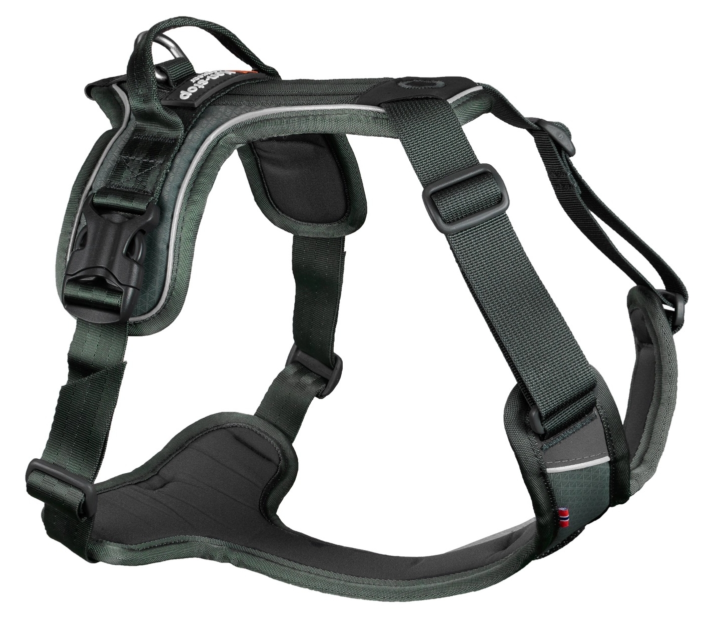 är en justerbar sele för hundar. Justeringar runt halsen och bröstet. Handtag och tre fästpunkter för kopplet gör selen mycket mångsidig.