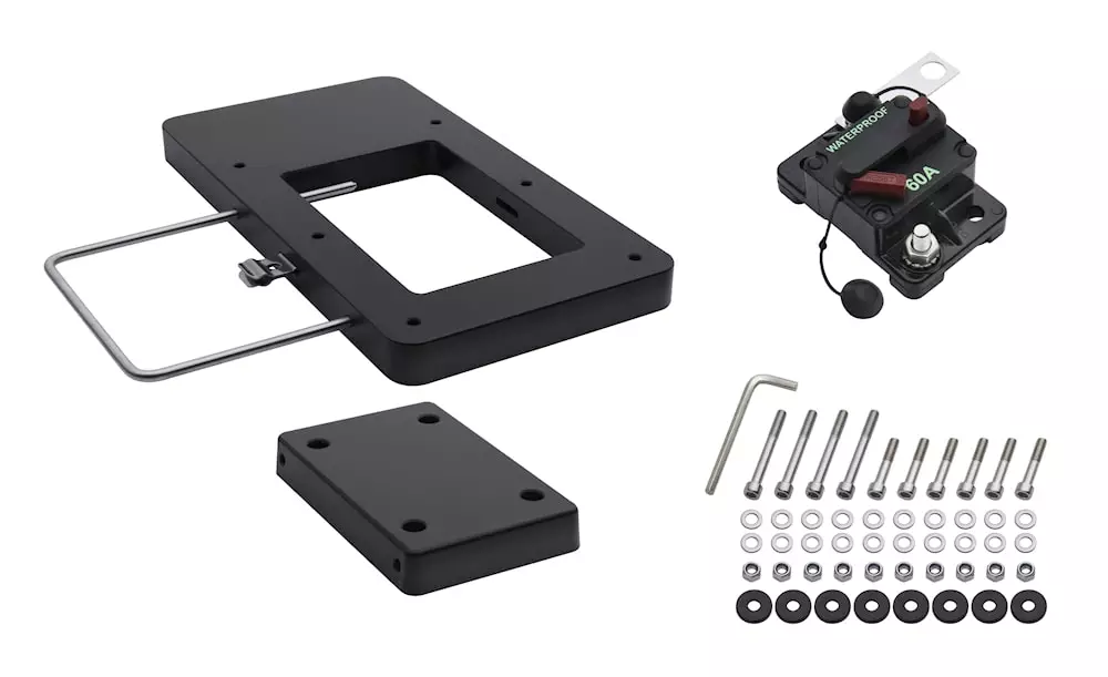 Den nylonbaserade snabbfästesfoten möjliggör snabb montering och demontering av föreningsmotorn utan verktyg, vilket underlättar användning, transport och förvaring av båten. Den medföljande 60 ampere automatiska säkringen skyddar motorn och elsystemet från överbelastning och ökar systemets säkerhet.