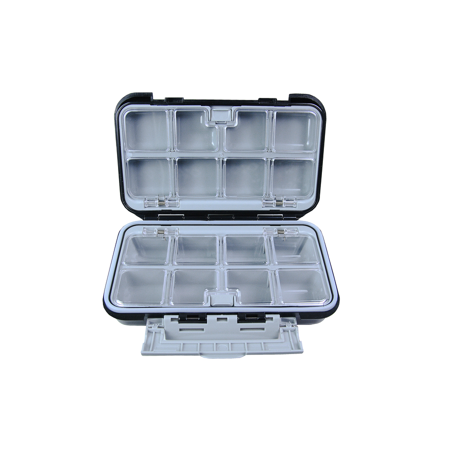 K.P Tillbehörslåda Svart - K.P Beteslåda är av mycket hög kvalitet och hållbar. Lådan är helt vattentät och erbjuder mångsidiga användningsmöjligheter, eftersom produkterna inuti kan delas upp i många olika storlekar av fack. Tack vare materialvalen är den också lämplig för jiggskallar och vikter.