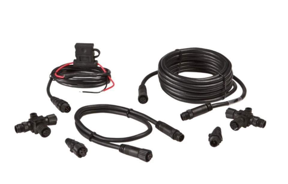 Paketet innehåller två T-kontakter; en för Lowrance-skärmen och en för ström. I ändarna av T-kontakterna sätts "terminatorer", vilket gör att nätverket sluts. Medföljer en 4,5 m kabel och en 0,6 m kabel samt en strömkontakt. När du vill utöka nätverket med en ny enhet behöver du bara köpa en extra T-kontakt och kabel. Nätverket kan byggas så stort som behövs och du kan ansluta så många enheter som du behöver.