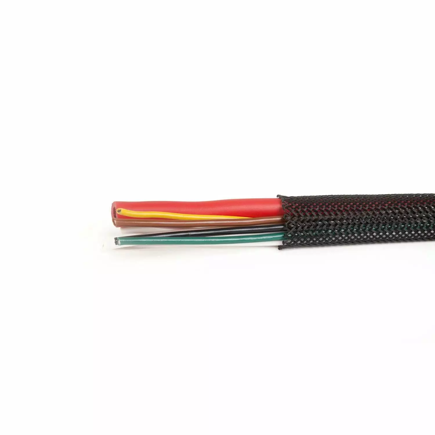 Oceanflex flätad kabelstrumpa 10m 14-27mm är en expanderande kabelstrumpa tillverkad av polyester, som är flamskyddad och halogenfri. Den är lämplig för att samla kablar och slangar och tål temperaturer från -50°C till 150°C. Dessutom är den UV-beständig och slitstark, och dess brandklassificering är UL224 VW-1.