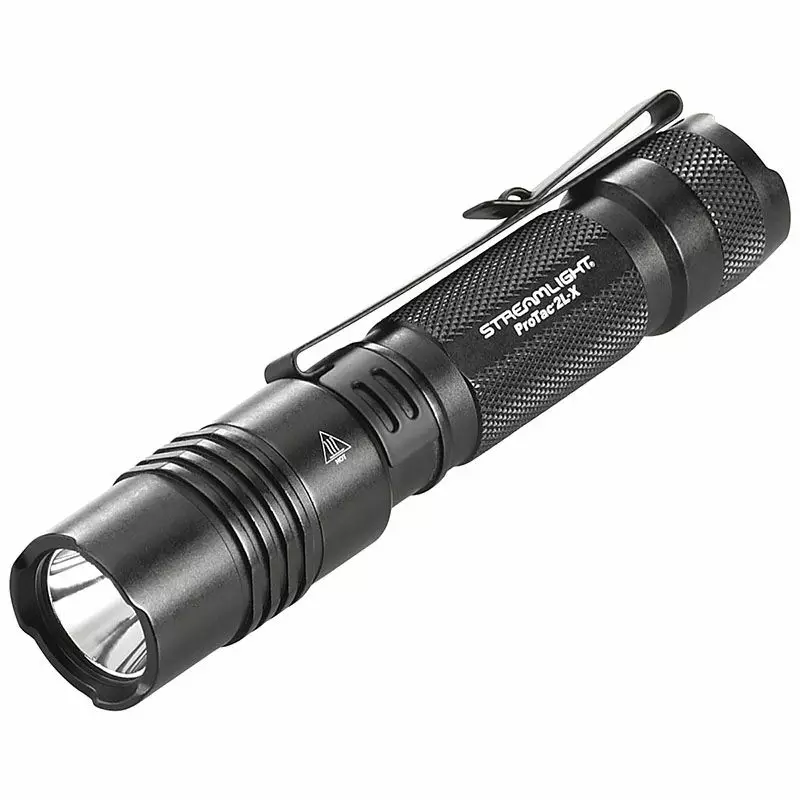 ProTac 2L-X erbjuder TEN-TAP-programmeringsfunktionen, som gör det möjligt för användaren att välja mellan tre program: High/Strobe/Low, High Only eller Low/High. Lampan är IPX7-vattentät (1 m djup i 30 minuter) och tål ett fall på 2 m. Dessutom har den ett anti-rull-huvud som förhindrar att lampan rullar på plana ytor.