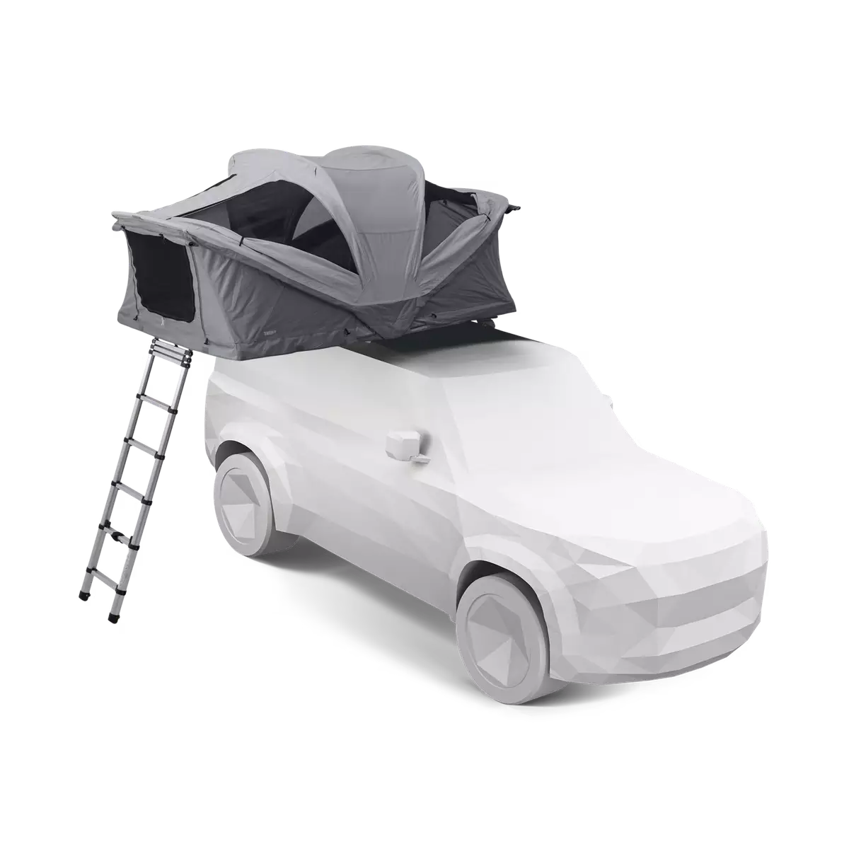 Tältets rymliga interiör och stora panoramafönster för naturen nära. Den utåtriktade ingången maximerar utrymmet för sovande och förvaring. Tältet är snabbt och enkelt att sätta upp och kan monteras på bilens tak på några minuter tack vare innovativa monteringsfästen.