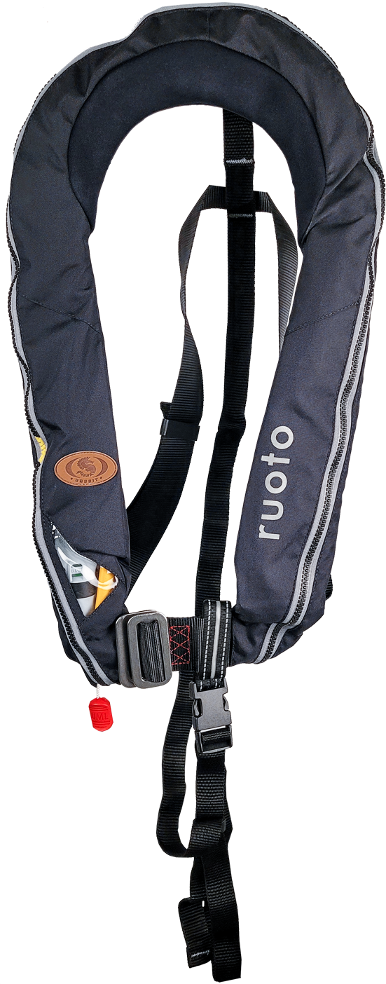 Ruoto Ursuit Slimline Pro 150N - uppblåsbara flytvästar är gjorda efter de legendariska Slimline Pro-västarna! Vi ville skapa våra västar baserade på dessa legendariska Ursuit-västar för att kunna erbjuda stiliga och högkvalitativa västar till så många som möjligt. Stiliga och extremt högkvalitativa västar. Ursuit Ruoto Slimline Pro automatisk uppblåsbar flytväst är en lätt och bekväm automatisk uppblåsbar flytväst med 150N lyftkraft. Materialet är UV-skyddat. Västen har en YKK QuickBurst™ dragkedja som stänger höljet. (kedjan är speciellt designad för uppblåsbara flytvästar). Komforten ökas av en neoprenkrage på västen. På ryggen finns ett stadigt triangelband som förhindrar att luft fastnar under plagget på ryggen. Västen har ett justerbart midjeband, grenrem och munstycke för uppblåsning. Utlösaren är en UML Pro Elite Sensor Automatic och CO2-patronen är 33g. Utlösarens serviceintervall är 3 år. Västen har ett informationsfönster som visar om utlösaren och patronen är i funktionsdugligt skick. Västens metallspännen är antimagnetiska och har en godkänd tygklädd D-ring för att fästa säkerhetslinan. Inuti västen finns även en visselpipa.