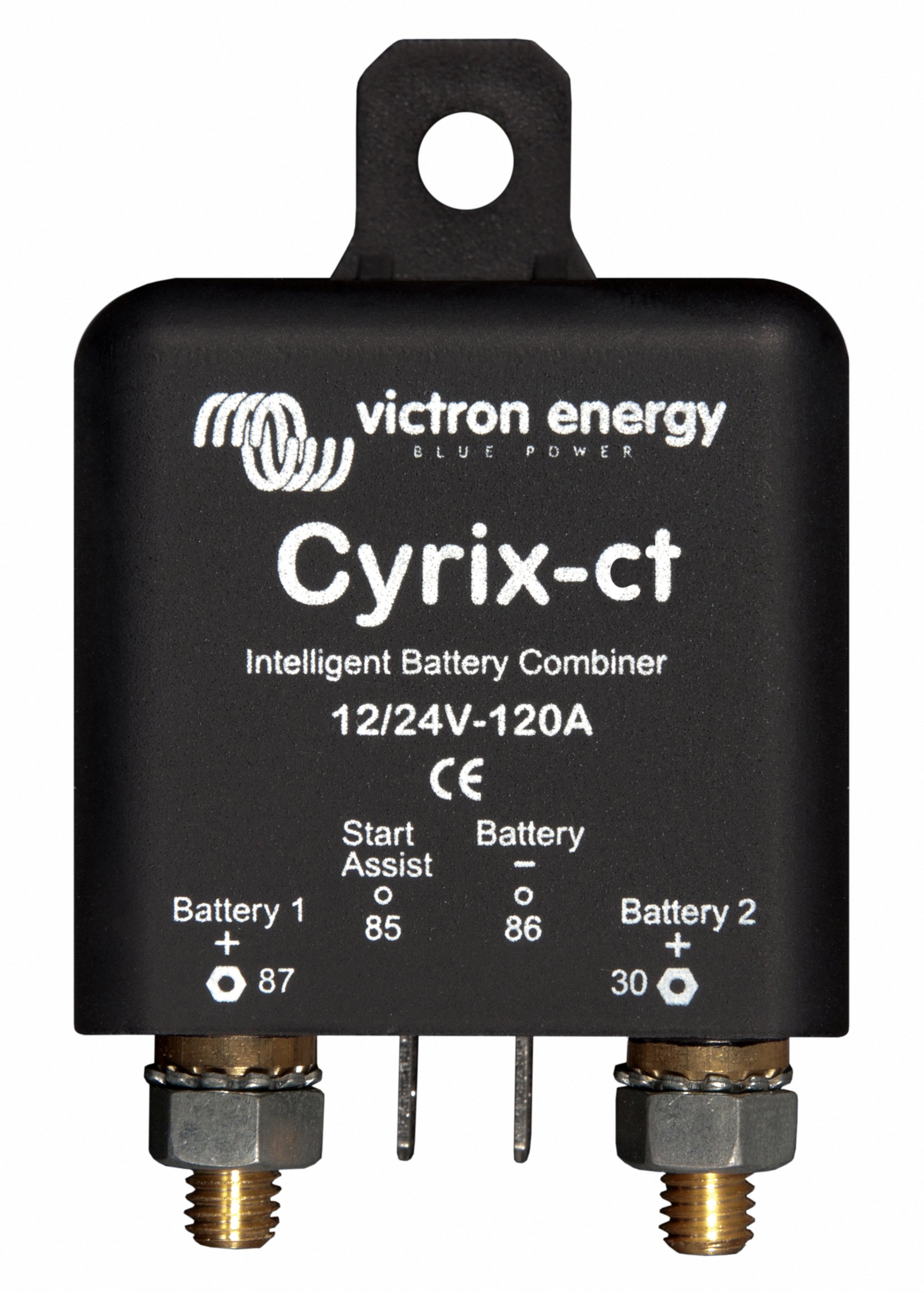 Victron Cyrix Li-CT - är däremot designad för att användas mellan båtens start-AGM-batteri och bogpropellerns eller elektronikens LiFePo4 litiumbatteri. Den förstår att lagringsbatteriet är ett AGM-batteri och mål-batteriet är ett LiFePo4 litiumbatteri. Lämplig även för husbilar där fritidsbatteriet är ett LiFePo4 litiumbatteri.
