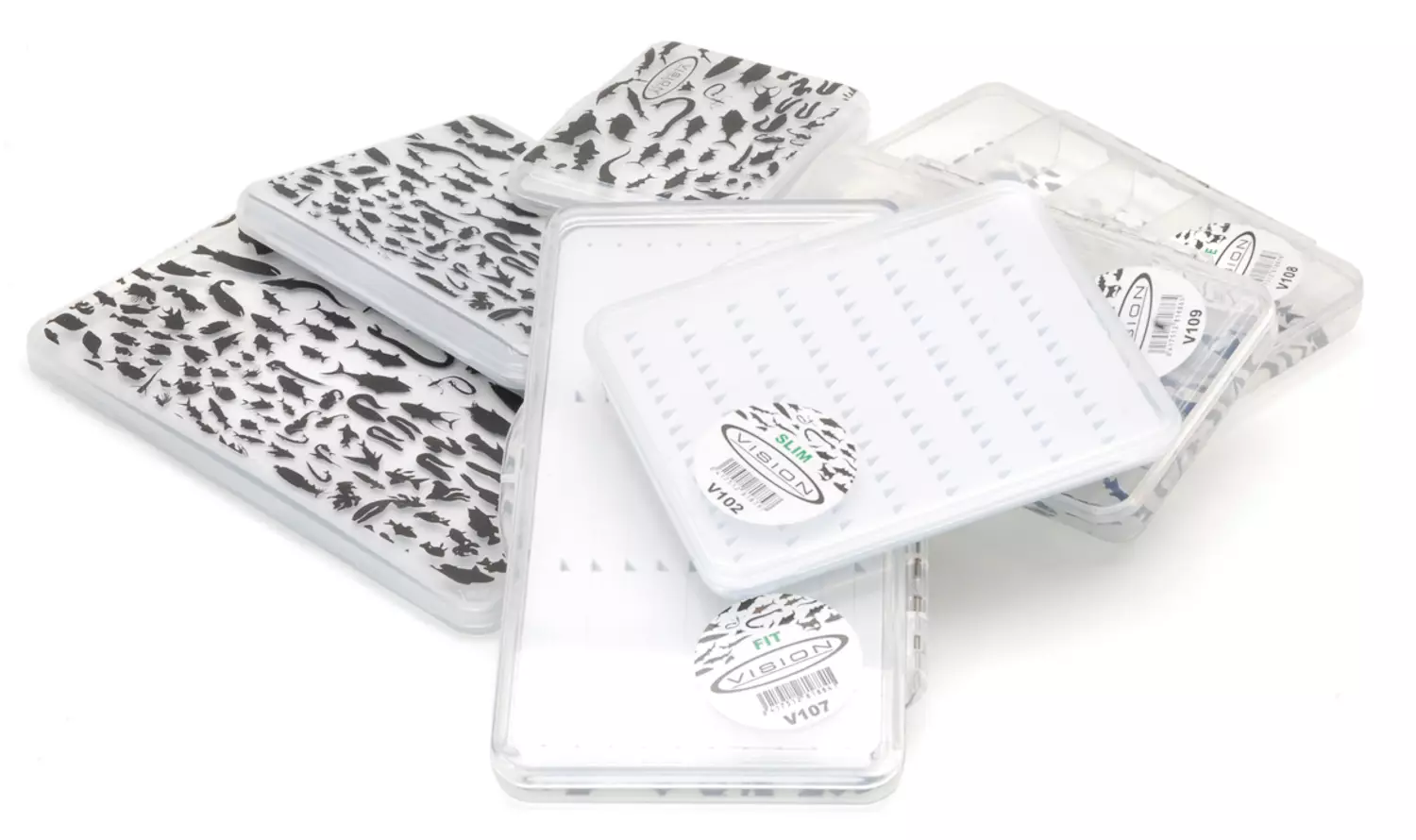 Vision Slim -flugaskfamiljen är dekorerad med ett speciellt fiskkamouflagemönster. Slim-typen av askar är mycket tunna och kan därför stoppas in flera i samma ficka på flugvästen. Serien inkluderar en speciell ask med magnetbotten som förhindrar att flugor/krokar faller ut.