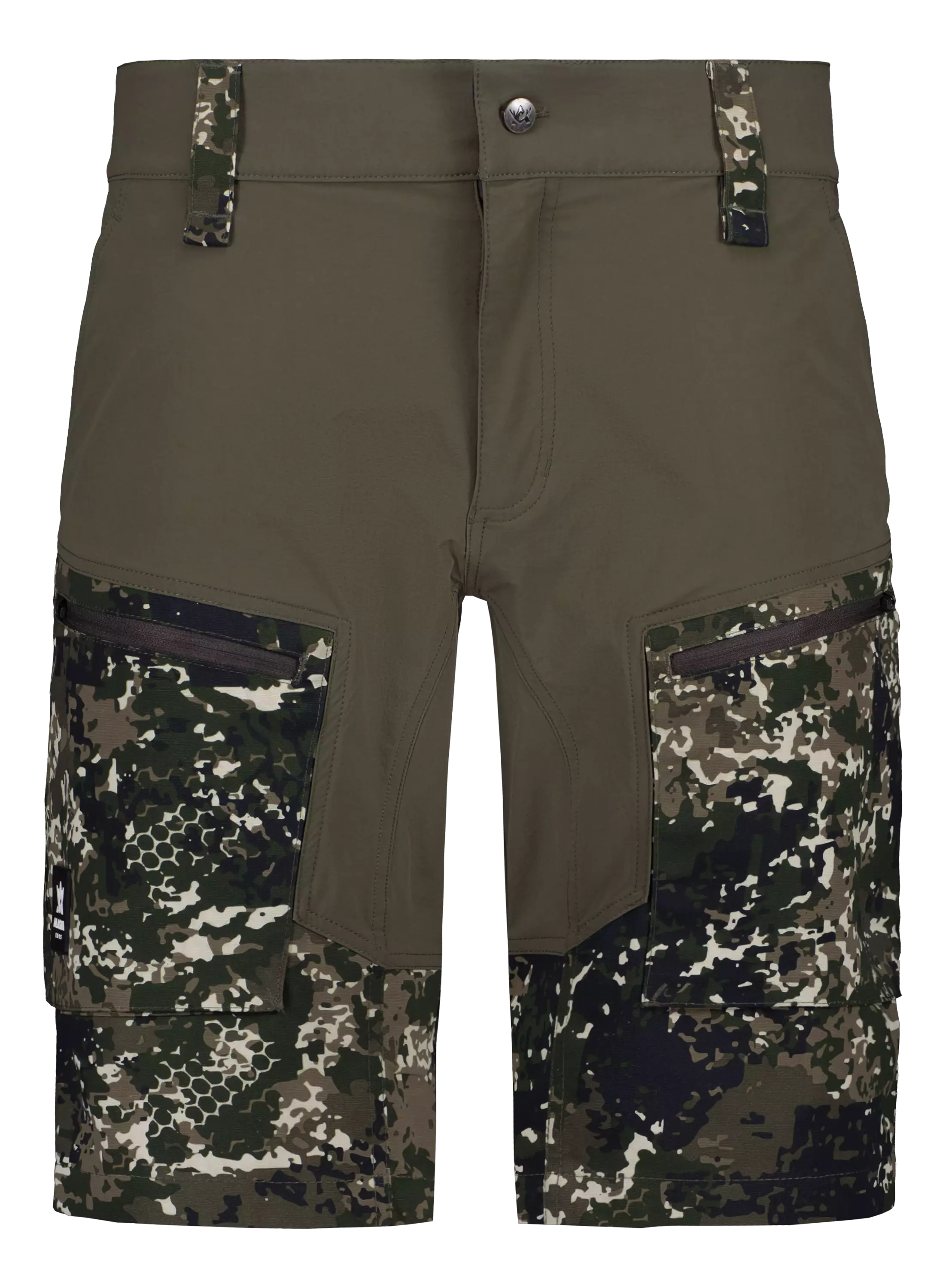 Shortsen har två handfickor och två dragkedjeförsedda lårfickor som erbjuder praktisk förvaring. Bältesöglor möjliggör användning av bälte, och shortsen har en tightare passform, så det rekommenderas att välja en storlek större än normalt.