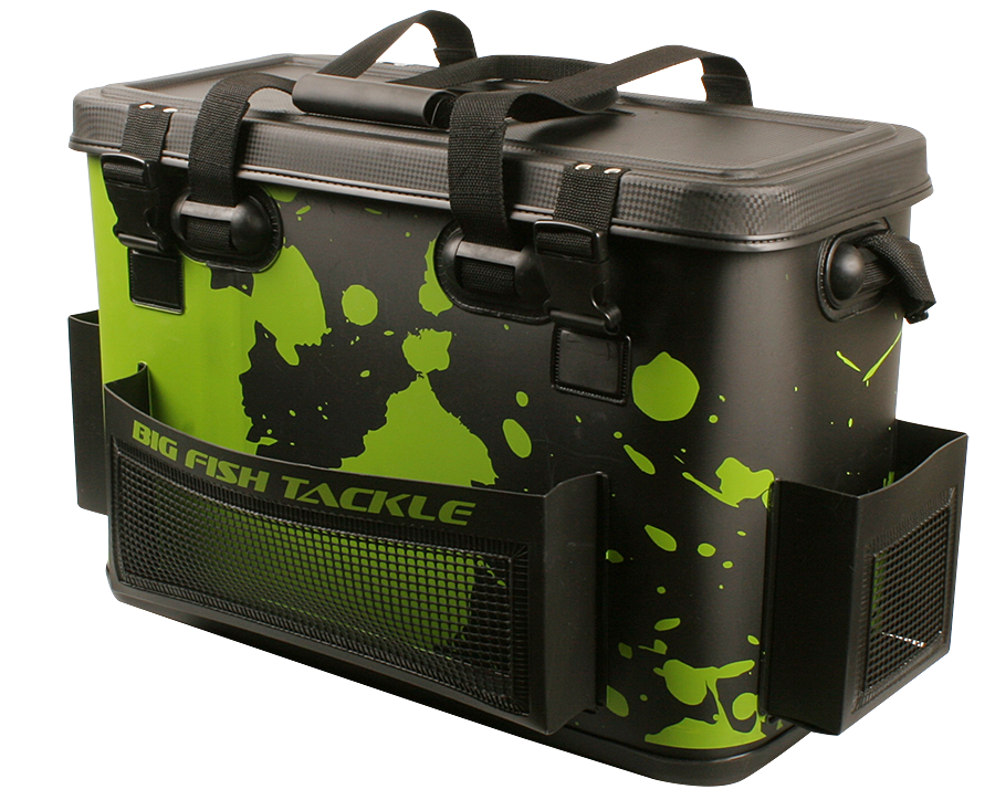 BFT Waterproof Pred8or Bag -väskan har ett plant lock med upphöjda kanter, vilket gör det enkelt att rigga tafsar och stingers på locket. Fickorna på utsidan är designade för att förvara tillbehör som tänger och klippare, och inuti hittar du 4 stycken BFT:s Jerk-lådor. Insidan är uppdelad i två delar, så att du kan förvara beteslådorna i ett fack och i det andra kan du lägga till exempel en kamera eller fler beteslådor!