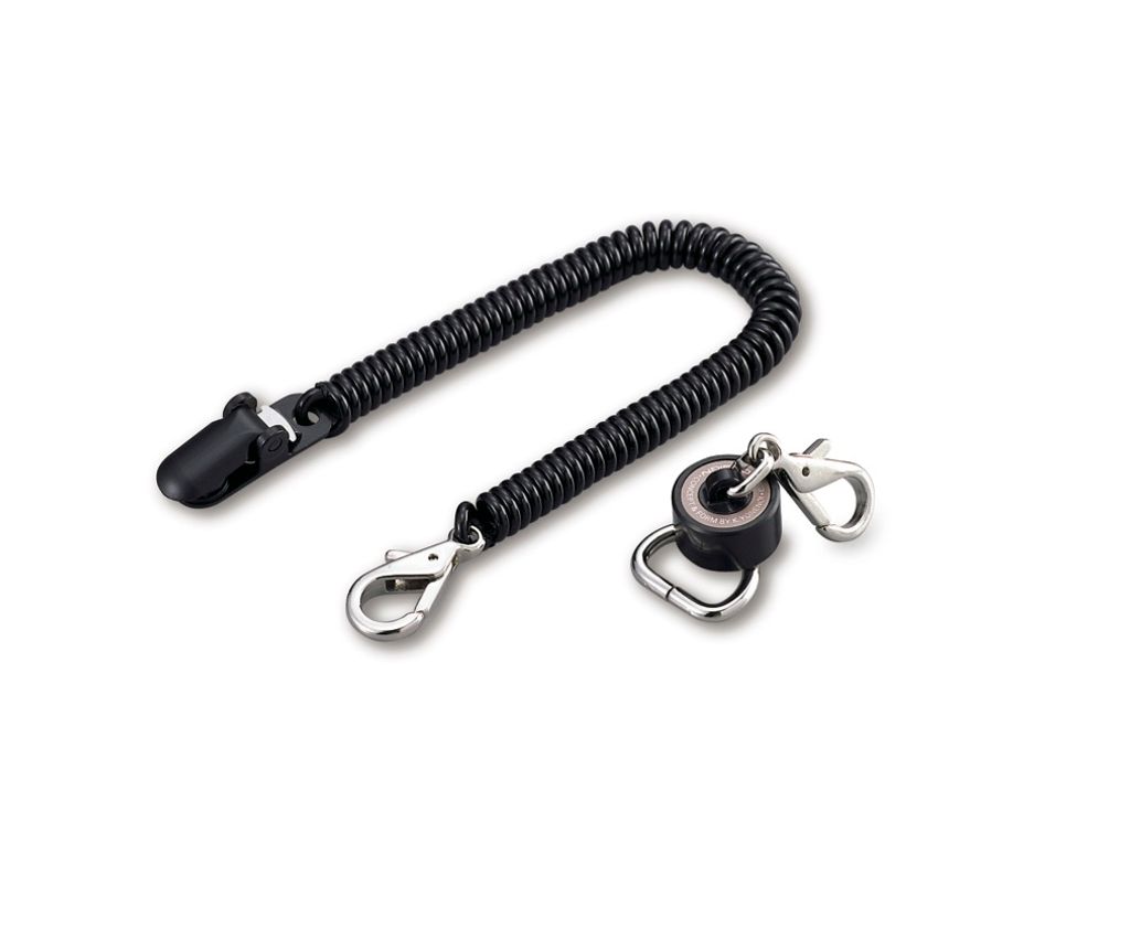 - Spiralformad säkerhetsrem – Sträcker sig upp till 120 cm i längd