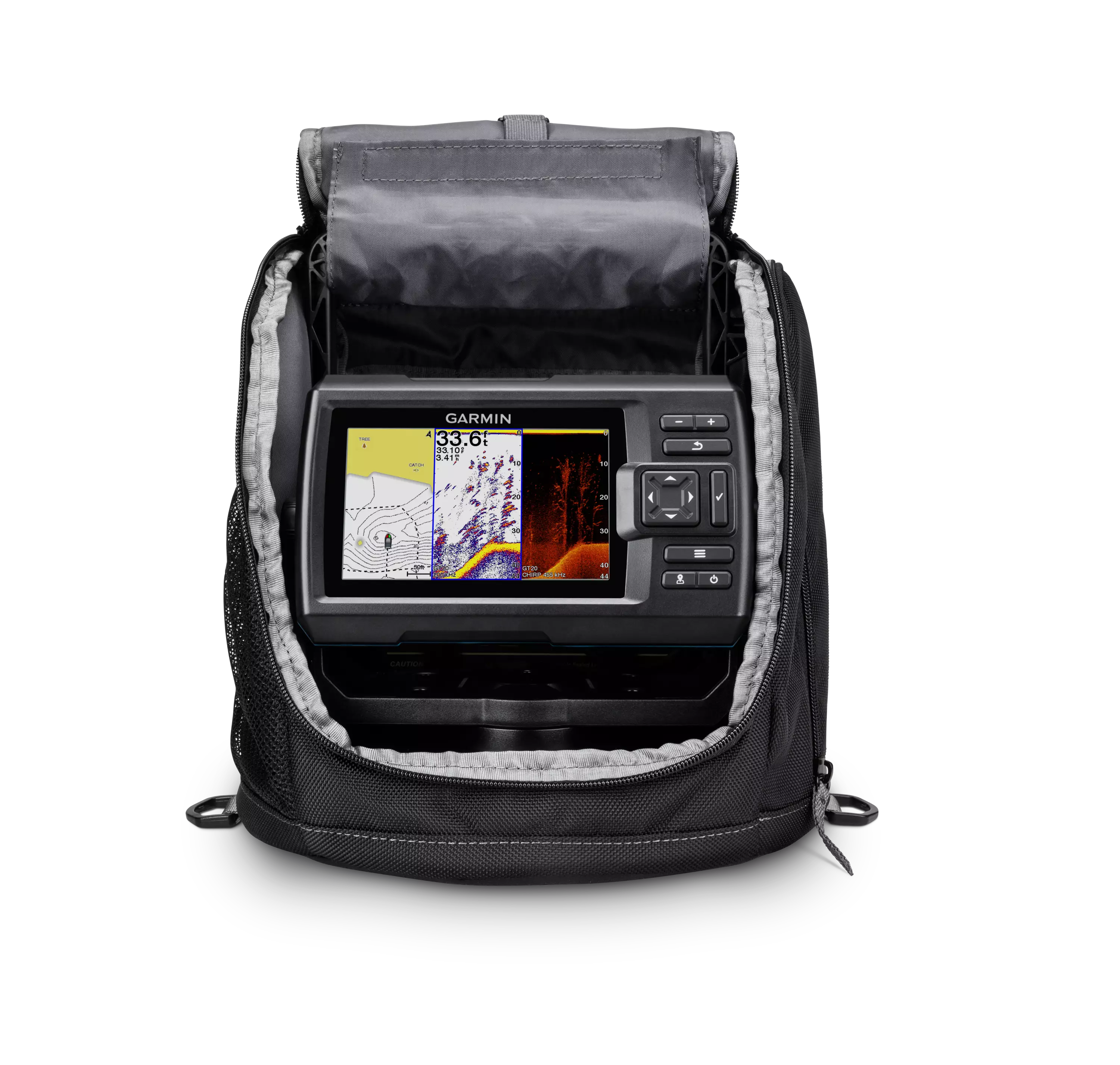 Ekolodspaketet innehåller också en robust bärväska som underlättar transport och användning av enheten under olika årstider. Genom att lägga till GT20-TM-sommargivaren kan du använda enheten även på öppet vatten.
