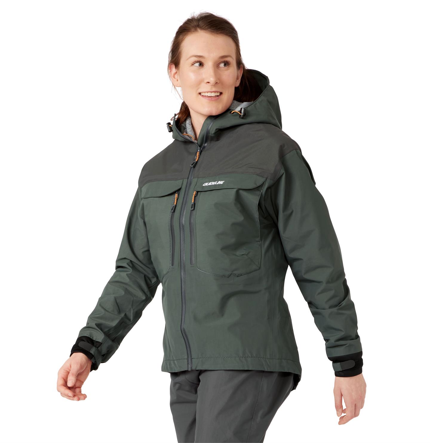Den styva huvkanten hjälper till att täcka ditt ansikte under de svåraste situationerna, medan de högt placerade dubbla bröstfickorna och Tool Bar™ gör det enkelt att organisera dina boxar, spolar, tafsar och tillbehör. När temperaturen sjunker, stoppa bara händerna i de fleecefodrade handvärmarfickorna för att komma igång. Din mössa, handske eller vattenflaska förvaras enkelt i den elastiska innerfickan. Vikten på Laerdal-jackan är 575 g (storlek Dam S) och finns i fem storlekar från XS till XL. Färgen är en diskret Algae Green med mörkare detaljer i Charcoal. Vårt 3-lagers nylonhuvudmaterial har en vattentäthet på 20.000 mm och andningsförmåga på 20.000 g/m2/24h.
