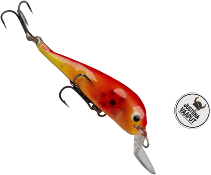 Justiina Vaaput Ariel är ett finskt handgjort laxdrag, som är speciellt designat för laxfiske. Dragets längd är 68 mm och vikten 9 gram. Det är tillverkat av så mycket finska material som möjligt, vilket betonar dess inhemska karaktär. Varje drag är testat i vatten av tillverkaren, vilket garanterar en effektiv och sökande gång. Detta gör det till ett utmärkt val för både kast- och trollingfiske. Draget har Mustad TR78 ultrapoint krokar, som är kända för sin hållbarhet och skärpa.