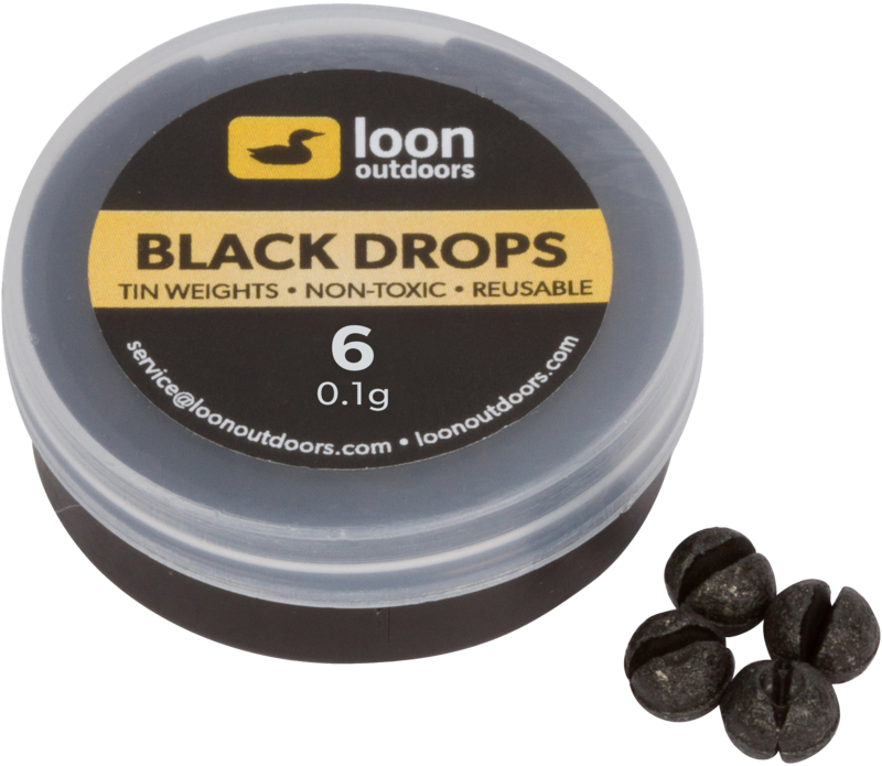 Loon Black Drops Refill Tub är ett miljövänligt alternativ för flugfiskare som behöver viktning för tafsen. Produkten består av blyfria hagel tillverkade av tenn. Den svarta färgen på dessa hagel gör dem diskreta i vattnet, eftersom de inte reflekterar ljus. Haglen är återanvändbara, vilket ökar deras ekologiska värde. Detta gör dem till ett utmärkt val för fiskare som vill minska sin miljöpåverkan.