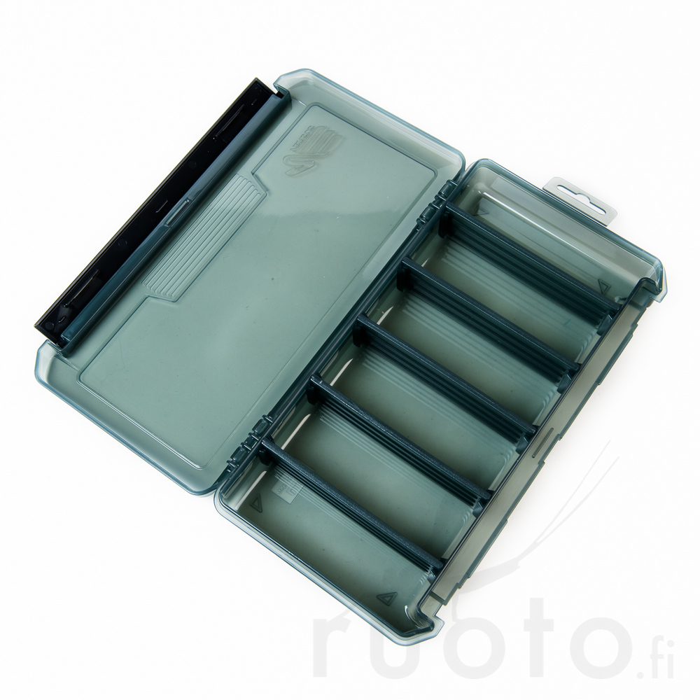 Meiho Versus VS-820NDM Black Compartment Case - en allmän låda som också passar utmärkt som flugask. Denna lådas fjäderlåsmekanism är lätt att öppna och stänga med en hand.