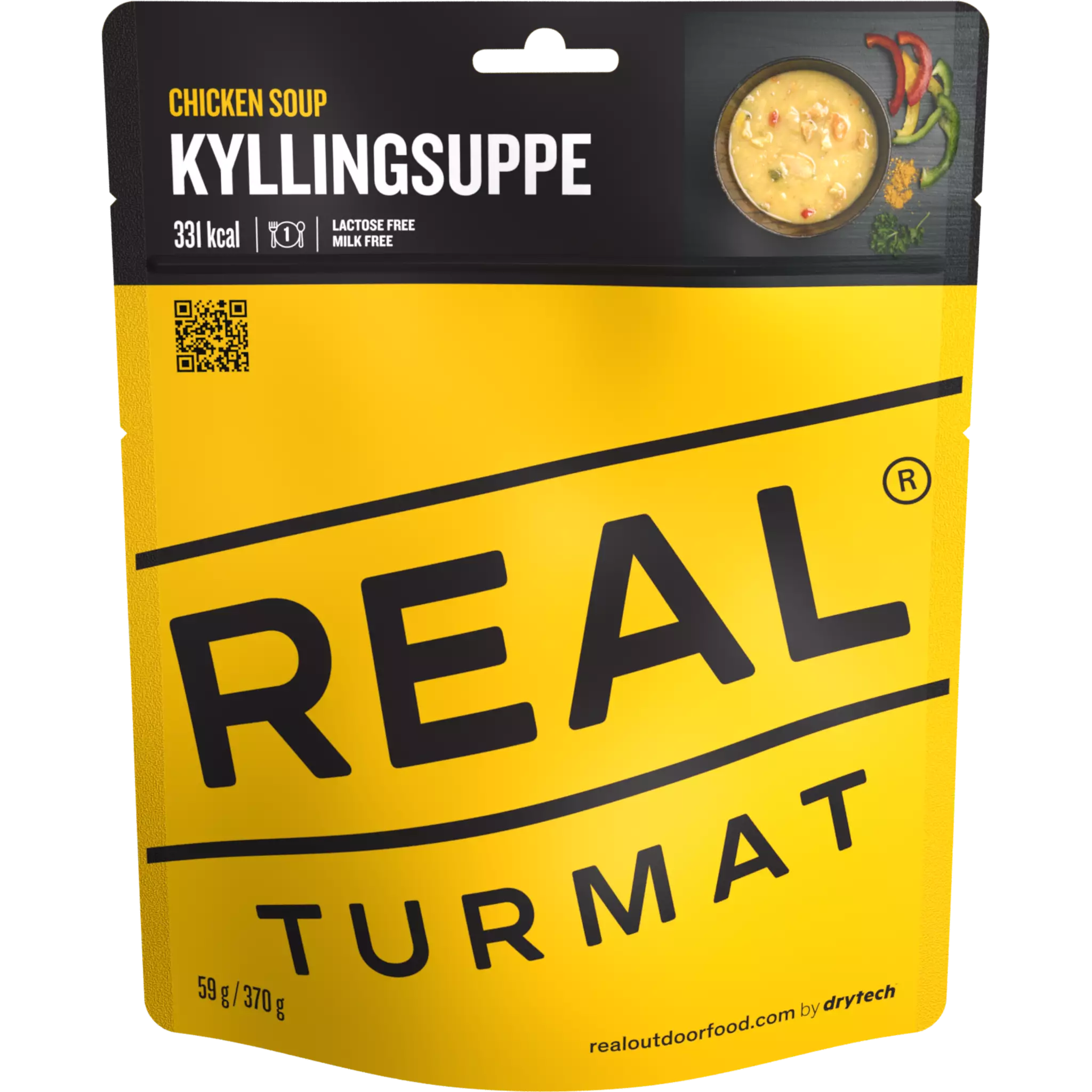 Real Turmat Chicken Soup är en praktisk frystorkad friluftsmåltid där enkel tillagning, god hållbarhet och smidig packning står i fokus. Smakbilden bygger på Krämig soppa med kokosmjölk, ingefära och vitlök, vilket gör den lämplig när du vill ha ett snabbt men ändå mättande alternativ. Den torkade strukturen gör produkten lätt att bära med sig, och den färdiga portionen passar bra för vandring, jakt, stugan och beredskapsmat.