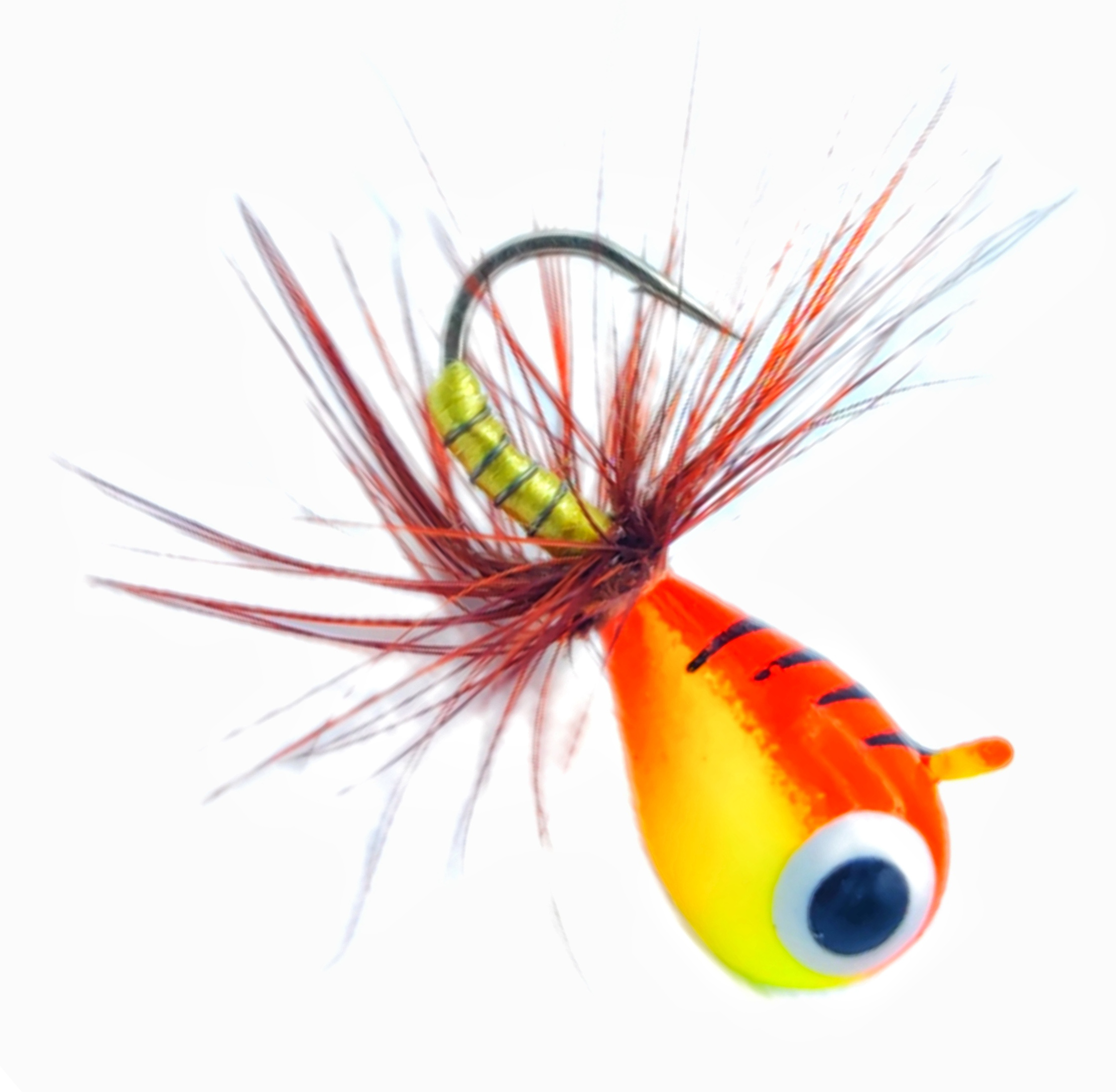 Ruthless Flugmormyska - Tillverkade av volfram, Ruthless Flugmormyskor är designade för pimpelfiske efter abborre, regnbåge, sik och harr. Flugbindningen på krokskaftet lever när mormyskan darrar och skapar en exceptionell profil under vattnet som maximerar stimulansen. Ruthless Flugmormyskor är gjutna på en högkvalitativ och mycket vass japansk Hayabusa-krok.