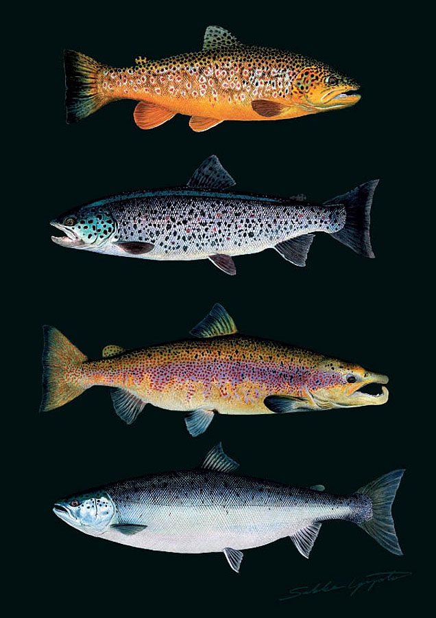 Kortet passar utmärkt att ramas in som en tavla eller skickas till en vän. Det kombinerar ett vackert utseende med användbar information om lax och öring.