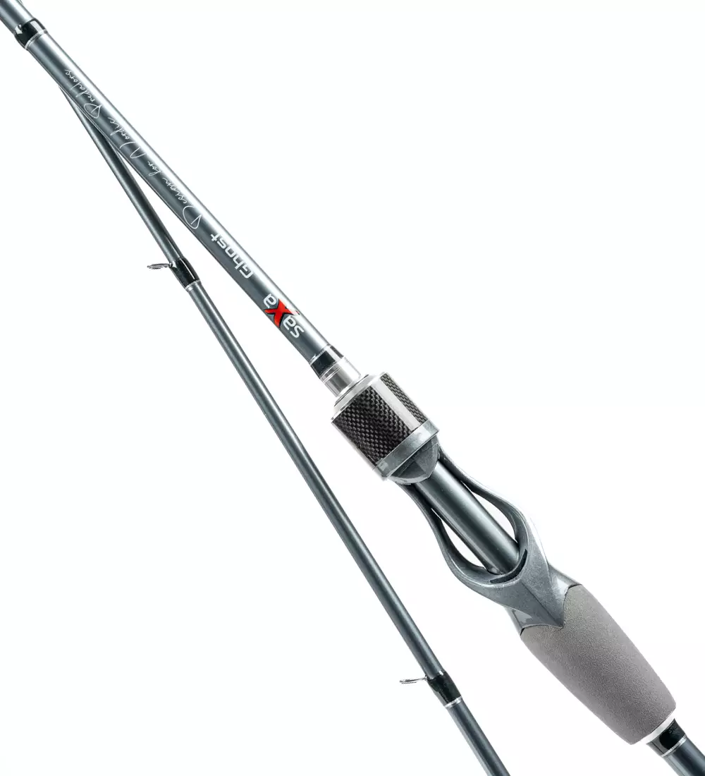 Saxa Ghost -spön är tillverkade av högkvalitativt 30-tons kolfiber och deras aktion är mycket snabb. Spöna är 2-delade och levereras med ett mörkgrått neoprenfodral som skyddar spöet väl. Fodralet har en dragkedja vid rullen, vilket gör det möjligt att transportera spöet i fodralet med rullen monterad.
