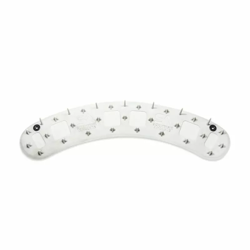 - Yttre kantens 5,7 cm höga piggar förhindrar att linan rymmer, och de inre kortare, koniska piggarna förhindrar att linan trasslar