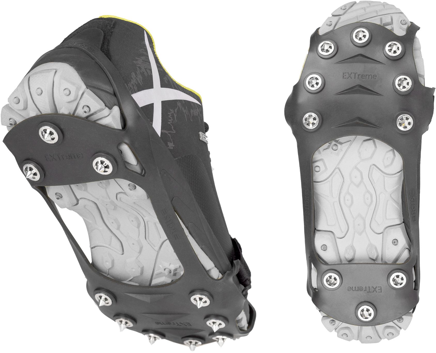 Snow Fox Extreme Halkskydd är utrustad med robusta dubbar som ger utmärkt grepp, särskilt på bar is. Om det finns ett lager snö på isen rekommenderas längre dubbar för bättre grepp. Från Snow Fox-sortimentet fungerar till exempel modellen Ketjulite bra även på snötäckta ytor.