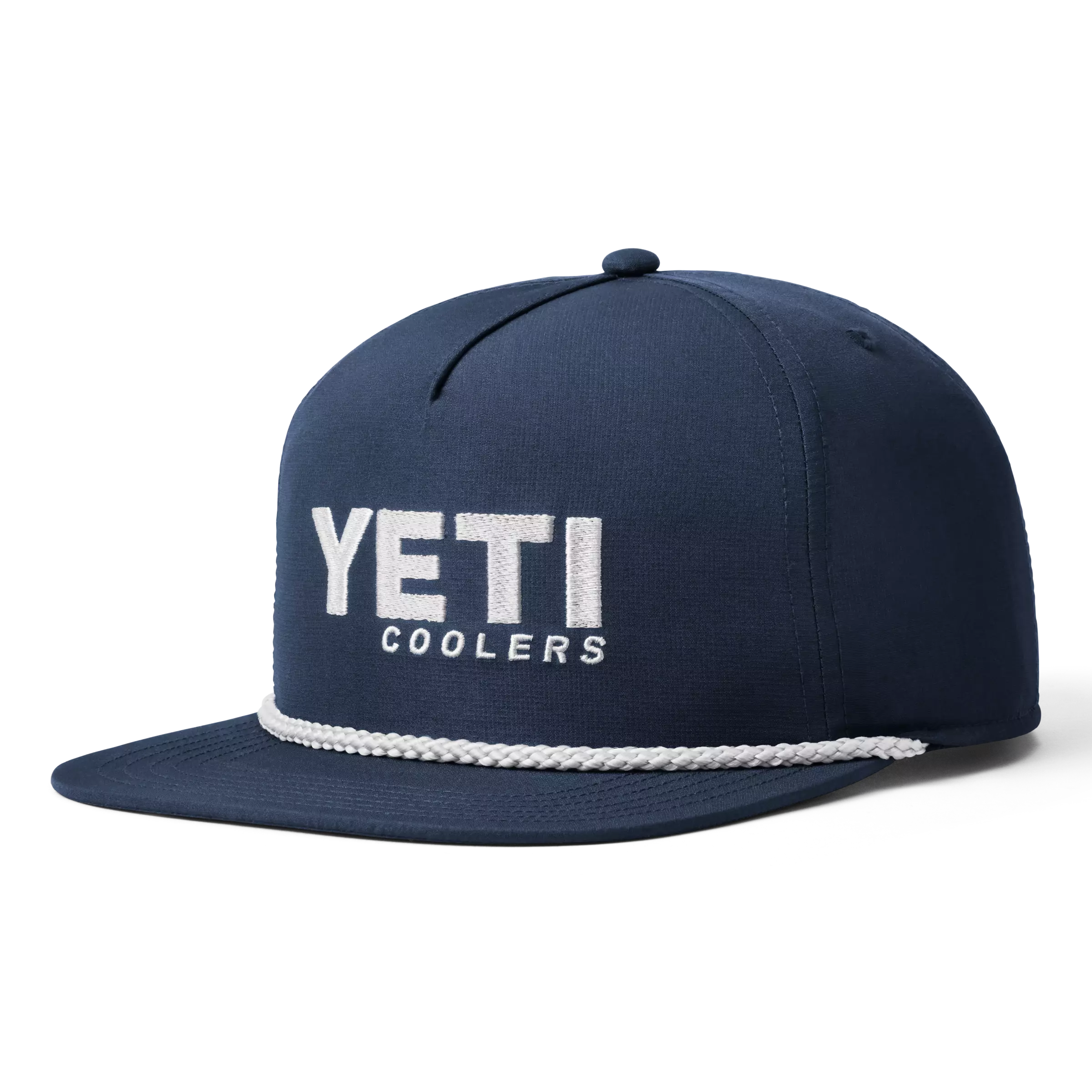 Yeti Flat Brim Rope Hat Navy kombinerar stil och funktionalitet och är tillverkad av hållbara och miljövänliga material.