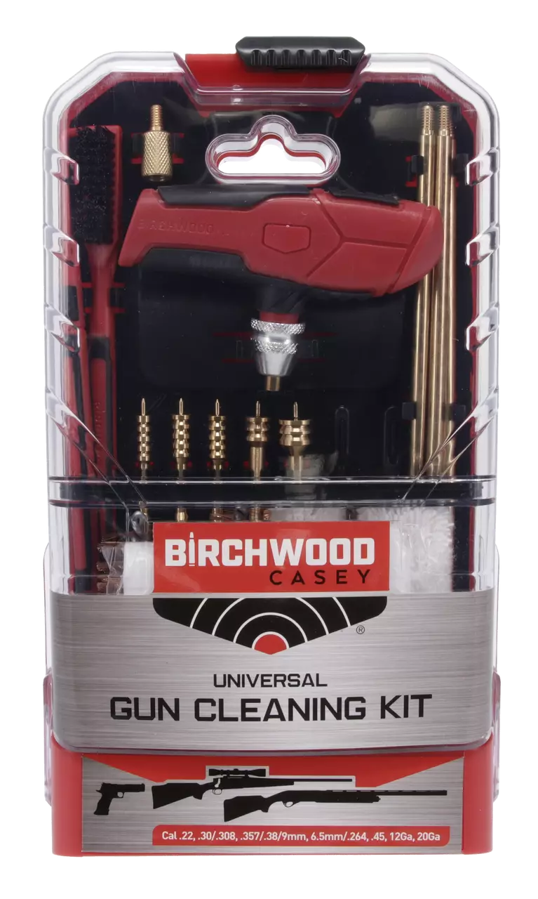 Birchwood Casey Universal Gun Cleaning Kit är ett mångsidigt vapenvårdskit som innehåller allt du behöver för att rengöra olika typer av vapen. Kitet innehåller: