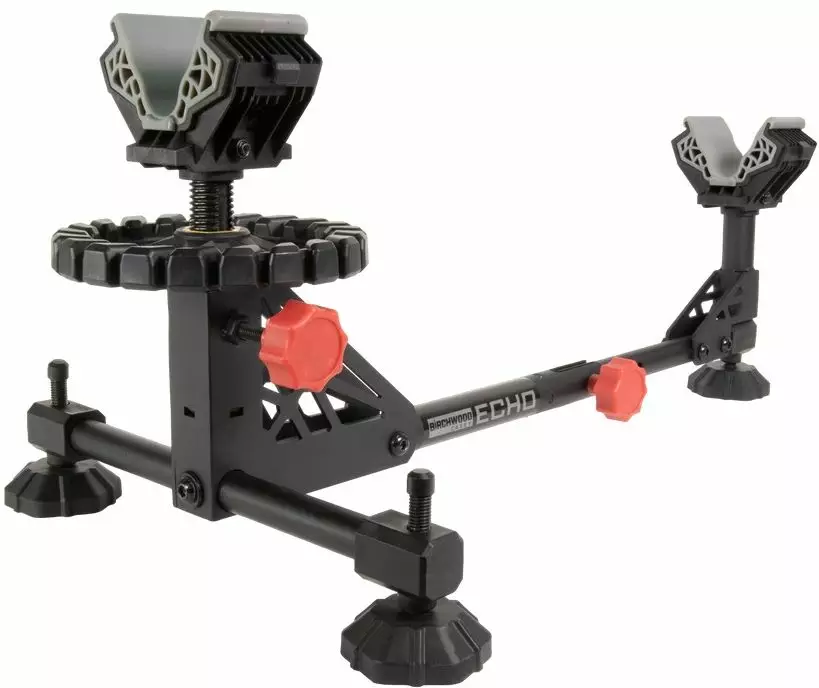 Birchwood Echo Shooting Rest är en skjutstöd som är hållbar och justerbar. Dess ram är tillverkad av hållbart stål och den passar för gevär med pipor som är upp till 7,5 tum (cirka 19 cm) långa. Skjutstödet har en halkfri gummibotten och justerbara balansfötter som säkerställer en stabil position för precisa skott. Framsidan har en justerare som erbjuder 3 tum (cirka 7,6 cm) höjdjustering, medan baksidan har en justerare som erbjuder 2 tum (cirka 5,1 cm) höjdjustering.