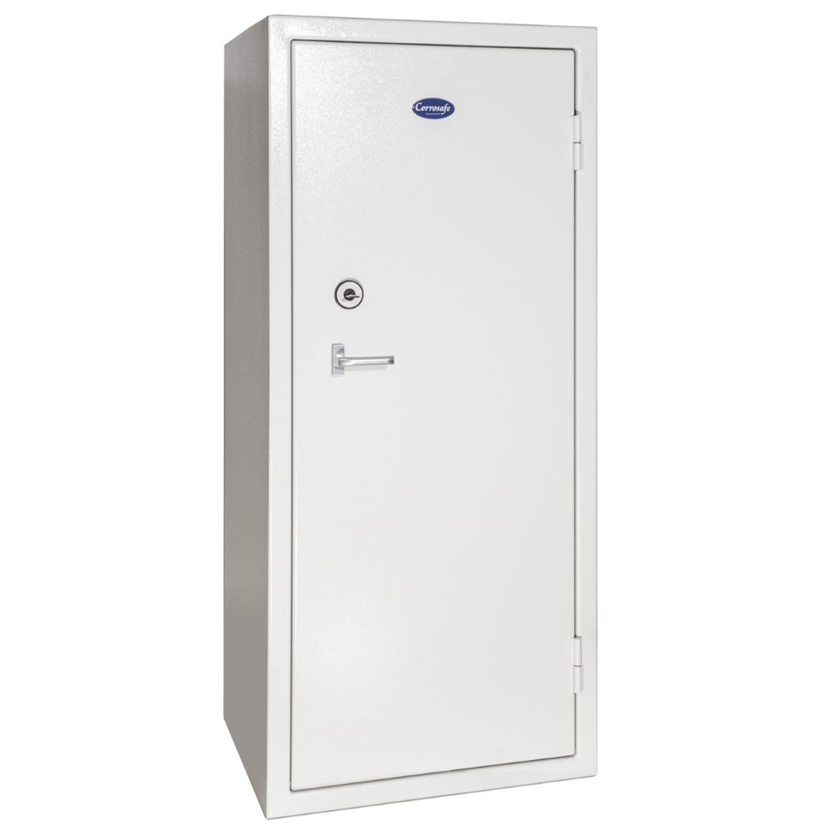 Corrosafe-vapenskåp tillverkade av 4 mm tjockt stålplåt är också kassaskåp. Det minsta väger 125 kg. Man behöver inte oroa sig för att nycklarna förvaras eller hamnar i orätta händer om man väljer ett säkert kodlås till Corrosafe-vapenskåpet. Småsaker och ammunition kan förvaras på överhyllan samt i förvaringsfacken på dörren. Botten har en dyna som skyddar vapnens kolvar från repor. Corrosafe-vapenskåpet är en pålitlig förvaring även för andra värdeföremål i hemmet och på kontoret. Om skåpet används för att förvara till exempel företagets dokument, är inköpet avdragsgillt i företagets beskattning.