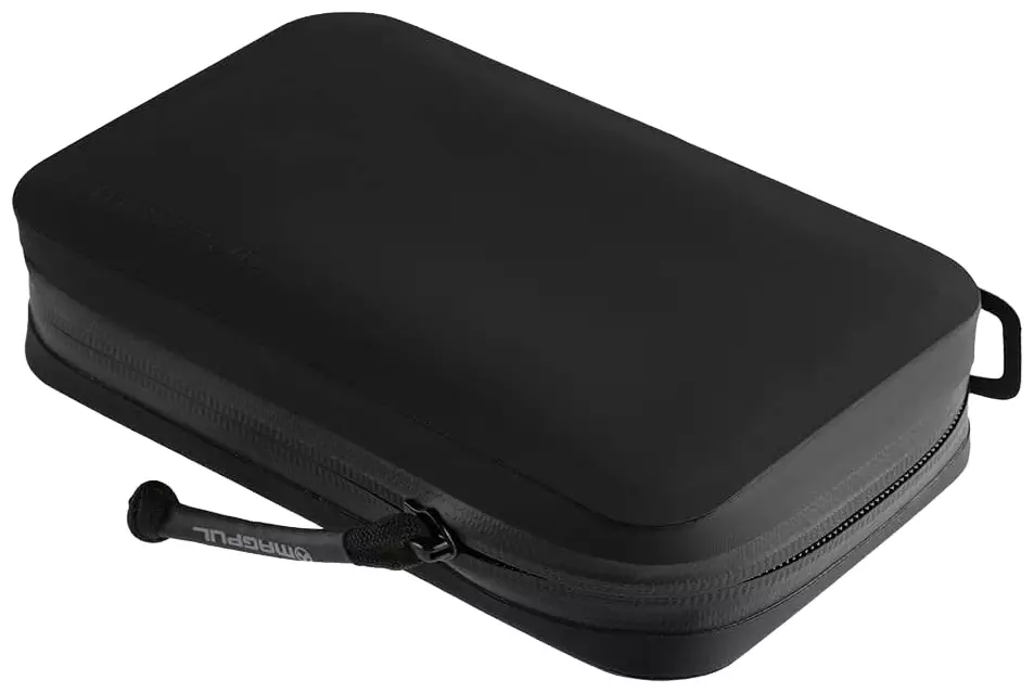 Fickan har en YKK AquaGuard-dragkedja som är vattenavvisande, och inuti finns en dragkedjeförsedd nätficka, två stående fickor och tre elastiska genomföringar som passar för förvaring av verktyg, pennor, dokument och kablar.