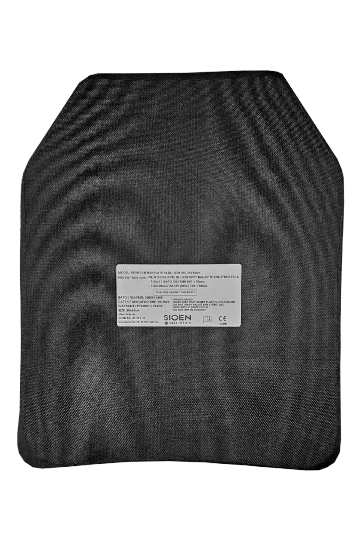 Sioen Ballistics RESTAC NIJ III+ ICW 25x30cm är en ballistisk skyddsplatta som erbjuder hög skyddsnivå. Plattan är designad för att användas som extra skydd i ballistiska skyddsutrustningar.