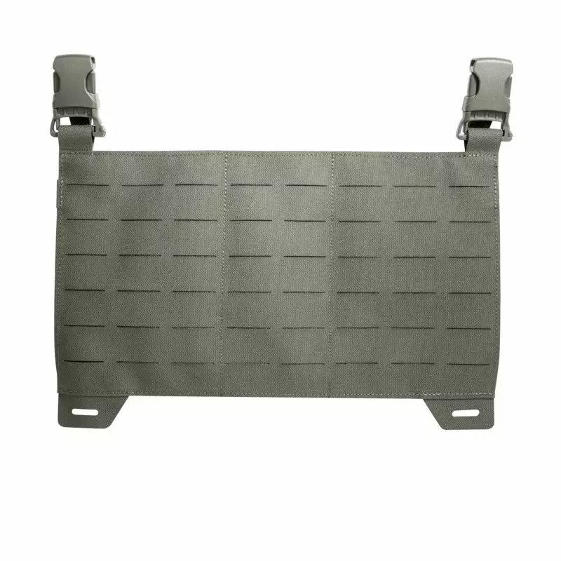 Särskilda egenskaper inkluderar ett laserutskuret MOLLE-system som erbjuder mångsidiga fästalternativ. Panelens baksida har en kardborreyta (krok), vilket ökar dess användbarhet. Dessutom är materialet behandlat med en PFC/PFAS-fri DWR-beläggning, vilket förbättrar dess hållbarhet och miljövänlighet.